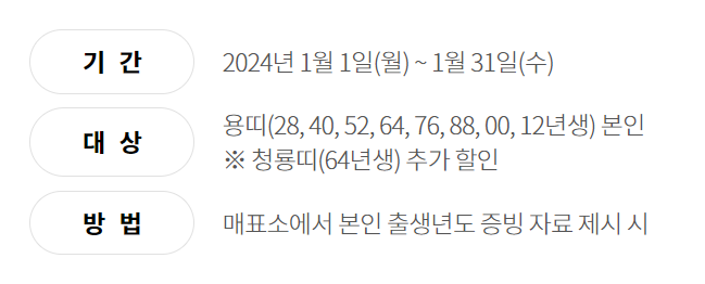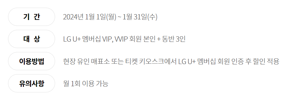 장애인, 국가유공자 분들은 공식증빙 지참 시 동반 1인까지 50% 우대받을 수 있고, 임산부의 경우 50%, 다둥이 행복카드 회원 가족도 30% 우대 가능합니다.