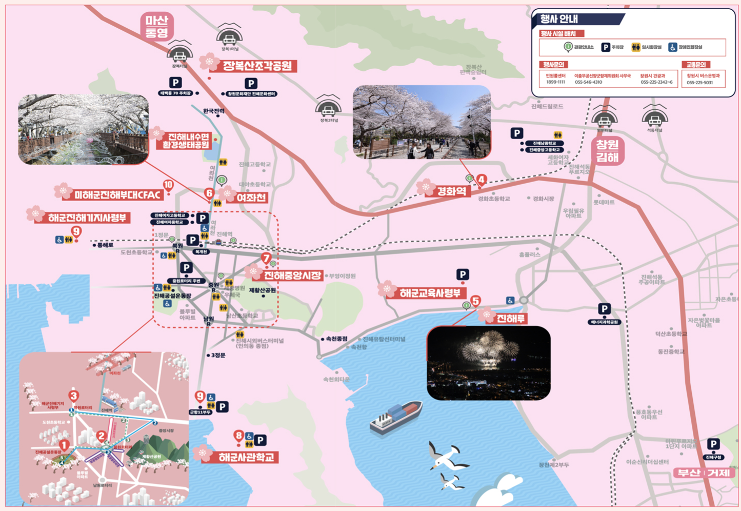 대한민국을 대표하는 벚꽃축제, 진해 군항제를 찾아주신 시민 여러분과 국내외 관광객 여러분을 환영합니다! 올해도 정성 들여 준비한 페스티벌에, 여러분의 변함없는 성원을 부탁드립니다!