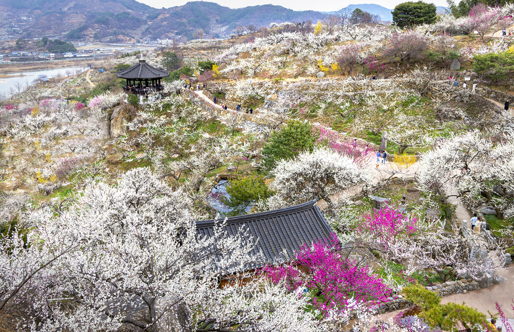 섬진강변과 청매실농원을 중심으로 6만평의 부지에 군락을 이룬 매화나무 꽃이 환상적인 장관을 이루며 해마다 100만이 넘는 관광객이 구경하러 갑니다.